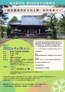 第69回春の史跡探訪は徳川慶喜が戊辰戦争後に蟄居された寛永寺の他、幕末明治に活躍された偉人ゆかりのお寺や墓所を巡ります。