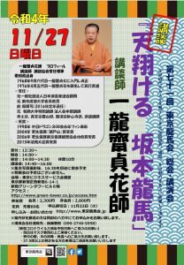 今回の講演会は、講談師の一龍齋貞花師をお招きして、『天翔ける 坂本龍馬」と題して御講談を頂く事となりました。