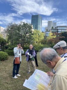 今回の史跡探訪は晴天の下、総勢40名の方へご参加いただき、乃木神社→乃木希典邸宅跡→毛利邸跡(東京ミッドタウン内)→勝海舟邸宅跡(ソフトタウン内)→赤坂氷川神社→四合稲荷神社→南部坂→赤坂教会→勝海舟邸宅跡(サンサン赤坂)→勝海舟邸宅跡(国会議員議員宿舎)→紀伊和歌山藩徳川家屋敷跡(東京ガーデンテラス)→清水谷公園(大久保利通哀悼碑)(現地解散)を巡りました。